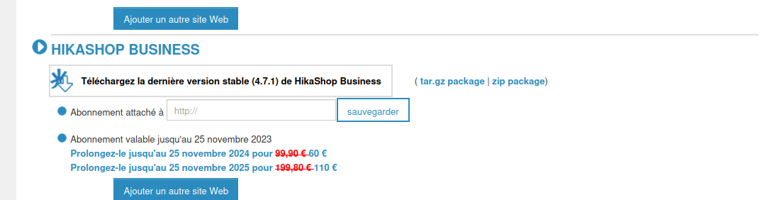 j'ai un souci quand je vais sur l'administration de la mise à jour du site. j'ai le message:
