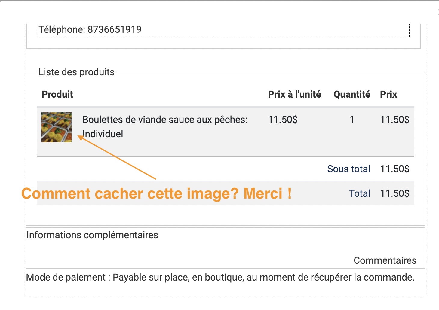 Bonjour, lorsqu'on ouvre une facture dans la section commande du Backend pour imprimer ladite facture, Il y a une image qui est affichée. Est-il possible de cacher cette image et comment?