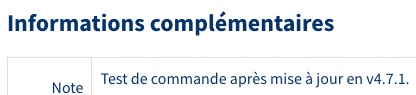 Mais en frontend, côté client, dans le détail des commandes, le champ ne s’affiche pas. Tel que je comprends le système, il devrait s’afficher. Il s’affiche partout où je trouve ça logique et prévisible, sauf dans le détail des commandes du frontend.