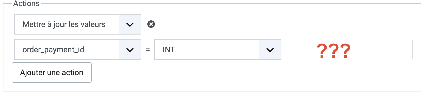 Dans la partie Actions, vous devez choisir les éléments que vous voulez afficher de vos commandes (qui ont été payé avec votre méthode de paiement classique) avec le mode
