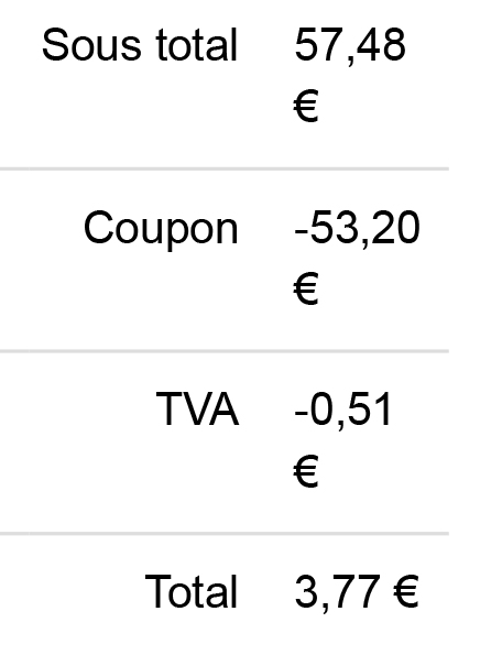 Si je retire le coupon de la commande, les deux TVA s'affichent correctement bien sûr :