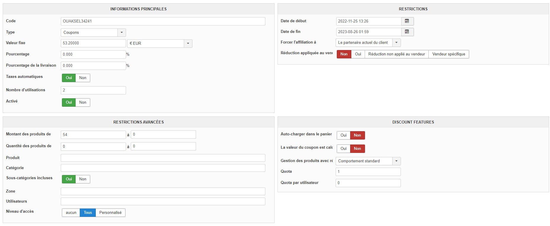 J'ai donc regardé la configuration du coupon, il est en taxes auto à montant fixe, et passe à 20% dans la commande :
