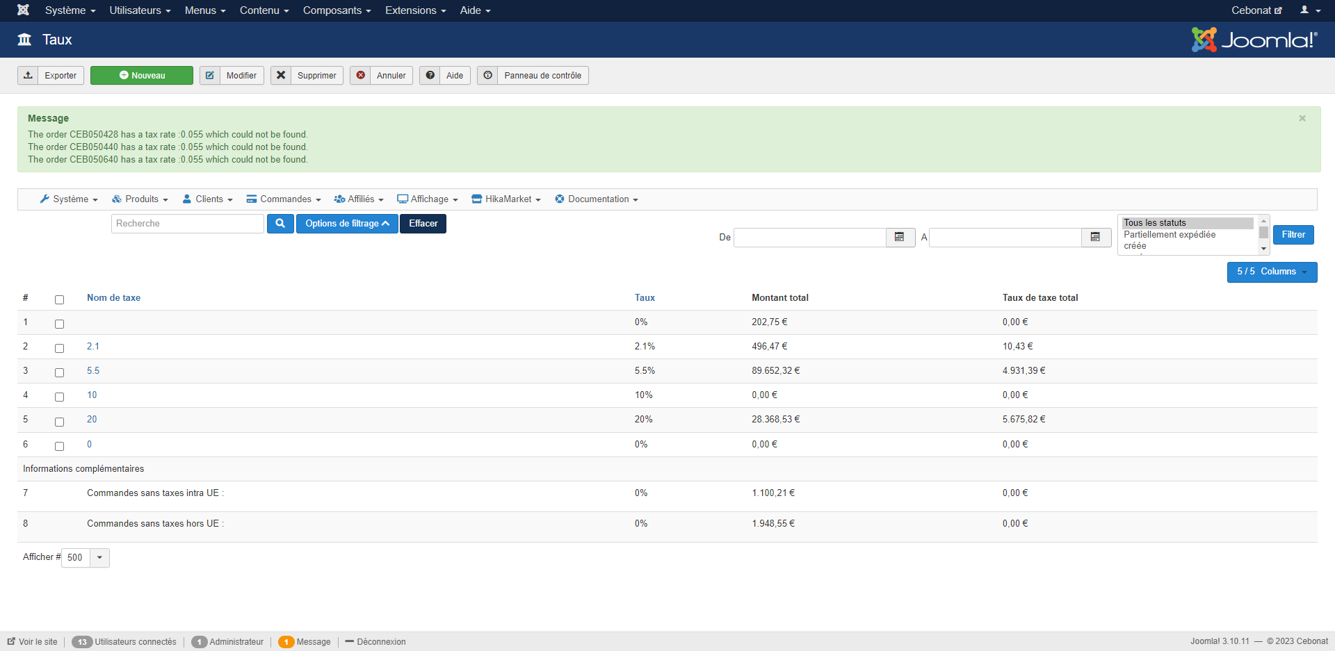 Et sans le plugin on voit que la TVA est négative ce qui expliquerait pourquoi elle ne s'affiche pas avec le plugin :