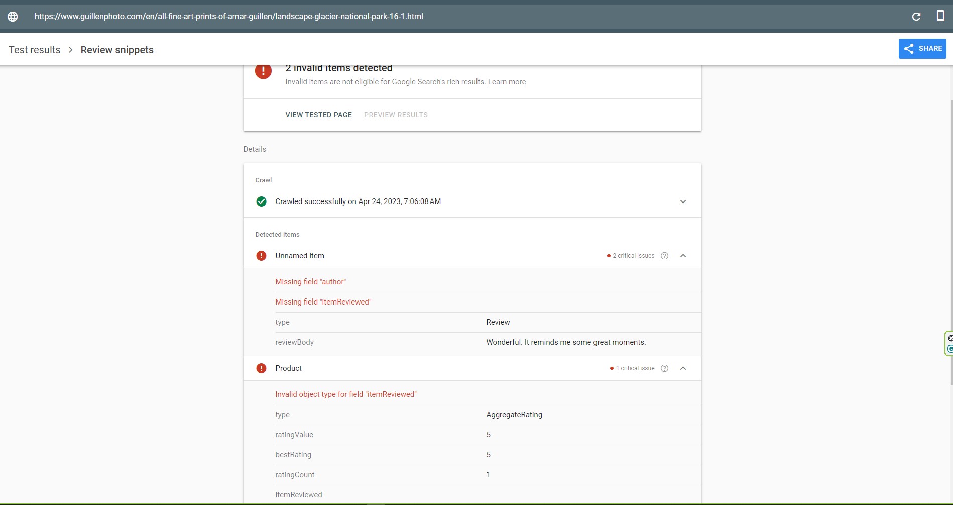 Vous avez tout à fait raison. Le problème vient de Google Structured Data que j'utilise pour créer des snippets pour mes articles. Quand il est activé, l'erreur se produit sur les pages des produits avec des commentaires ou des votes.