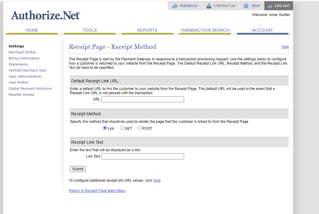 Vérifiez que les options Default Response/Receipt URL soient vides.