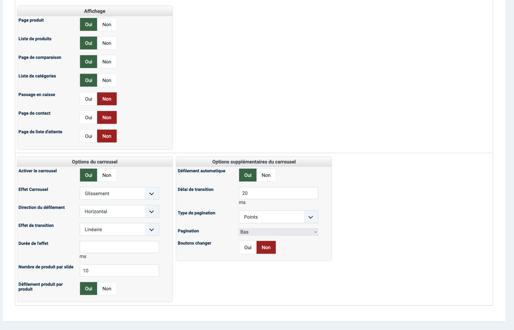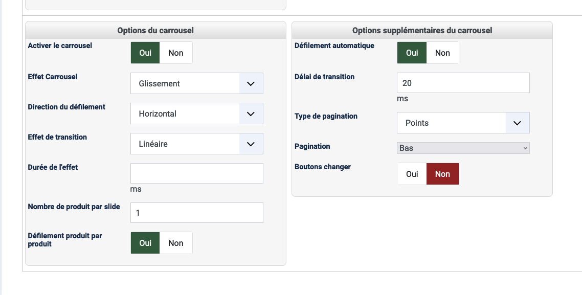 Maintenant, soucis de css, soucis d'appel de produit, soucis de redistribution de produits dans le slider? Je n'en ai aucune idée mais il y a clairement un soucis. j'ai un défilement de produits suivi d'éléments affichés en table.