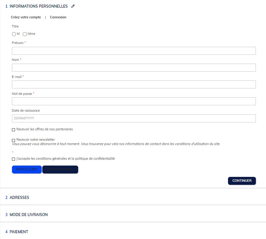 - Une override de la vue "checkout/show.php", pour ajouter du javascript qui va permettre l'affichage ou pas des différentes parties du checkout