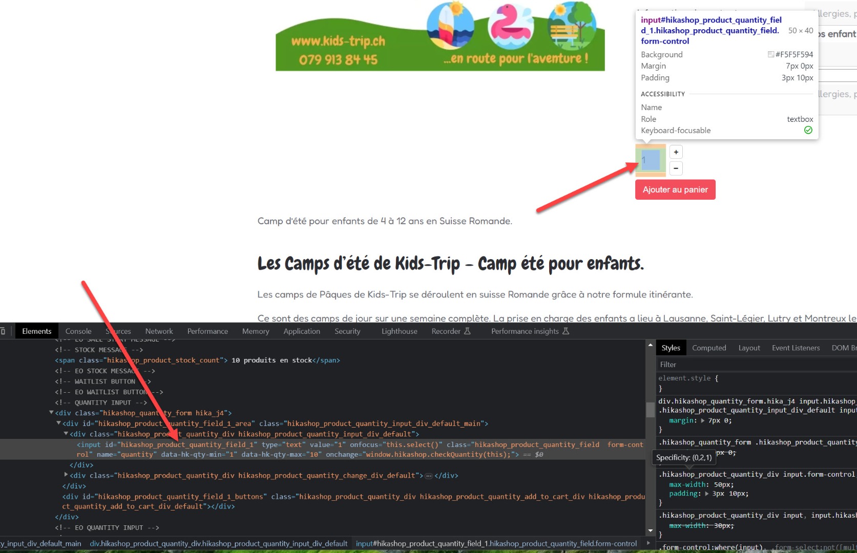 Cela agit sur le stock, mais avec une quantité de 1, peu importe ce qui est sélectionné dans le champ. Si vous avez besoin de gérer le stock en fonction du nombre de participant alors cette méthode ne fonctionnera pas pour vous.