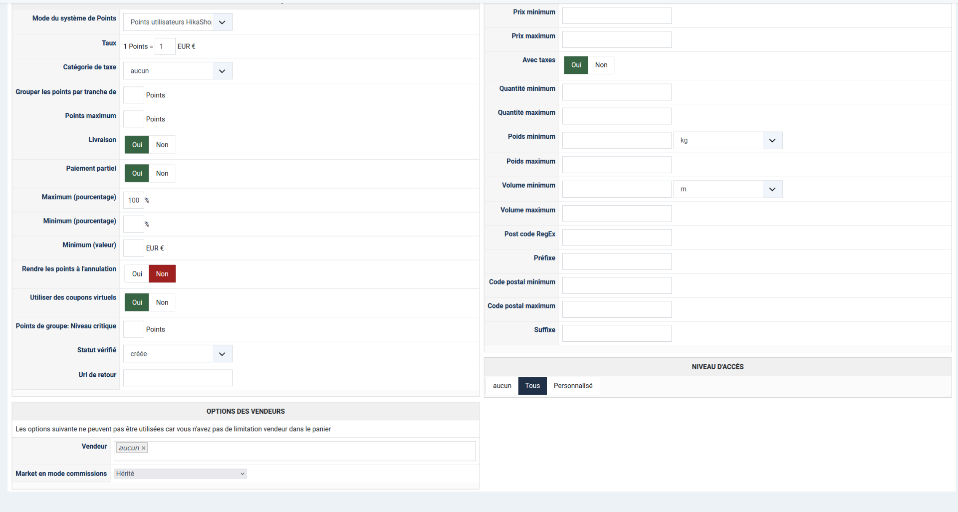 Donc oui, si vous mettez 0 dans l'option "Taux" du plugin User points, le client pourra toujours utiliser ses points avec un taux de 1 vu que c'est ce que vous avez configuré dans le User Points payment plugin.