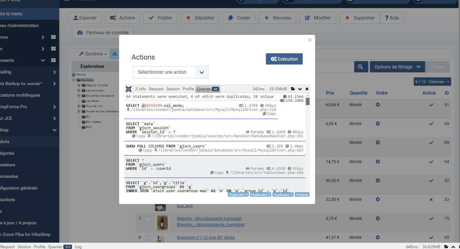 Pareil avec "mais le bouton "actions" ne fonctionne pas". Lorsque vous cliquez dessus il ne se passe rien ? ou alors vous avez une erreur ? Vous voyez une popup vide ? Vous avez une erreur dans la console du navigateur ? Plus d'information avec le débug activé ?