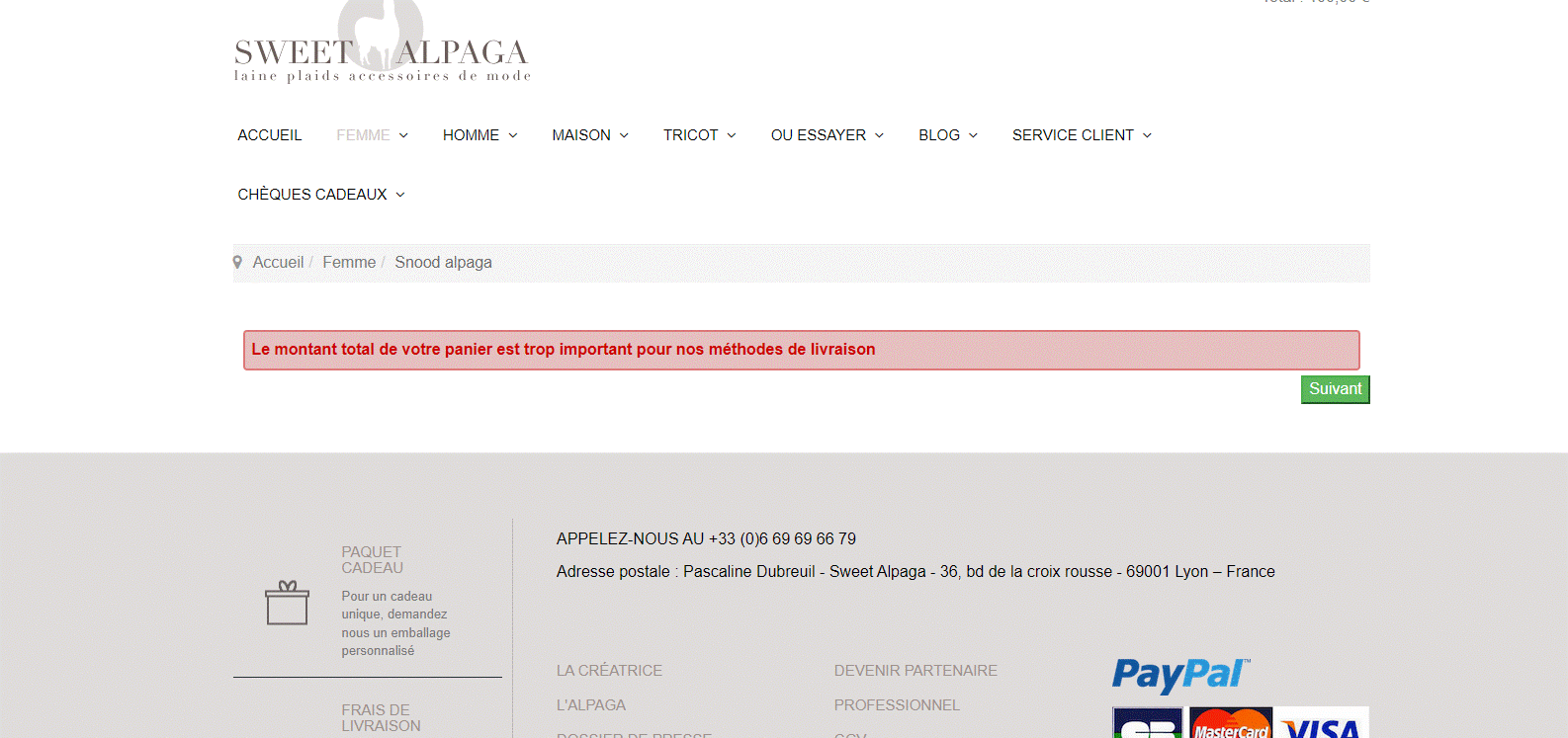 « le montant total de votre panier est trop important pour nos méthodes de livra