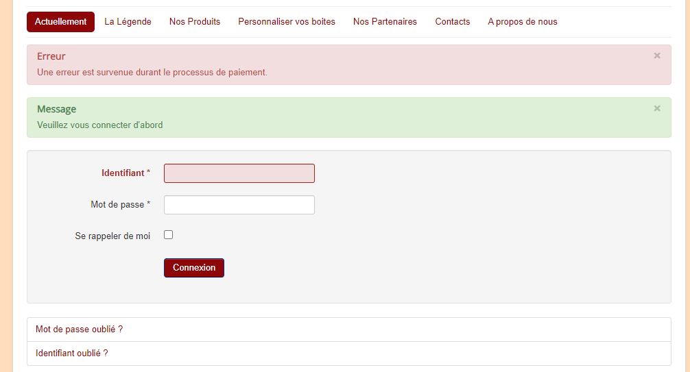 Je vous ai mis une capture de l'écran avec le message qui s'affiche : "Erreur Une erreur est survenue durant le processus de paiement."