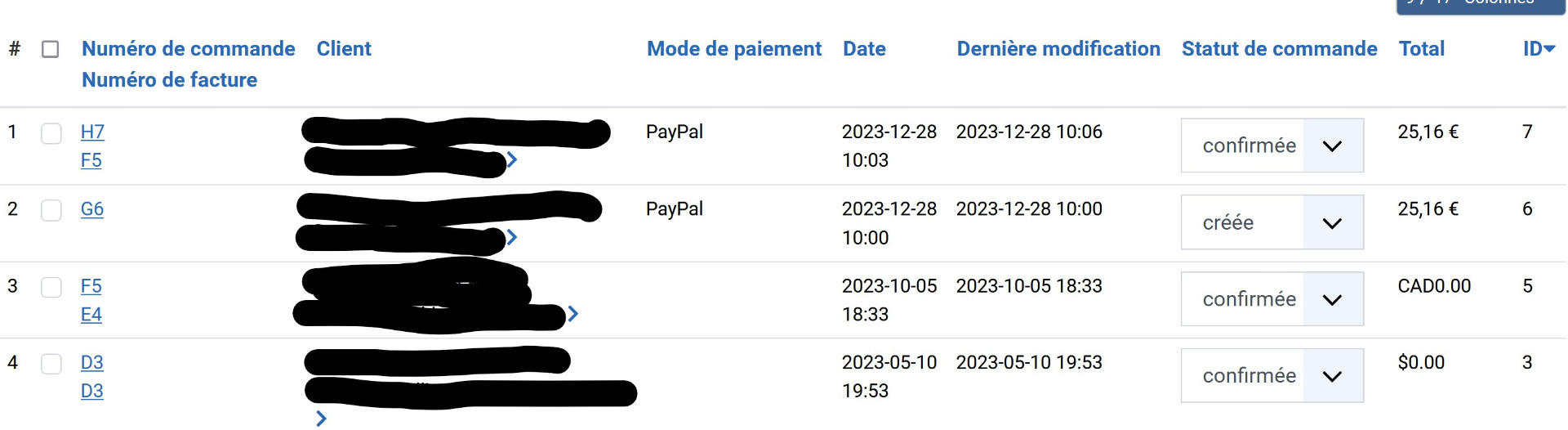 C'est pour cela que sur votre capture, la commande H7 a un numéro de facture F5, alors que la commande G6 n'a pas de numéro de facture, vu qu'elle n'a pas été payée.
