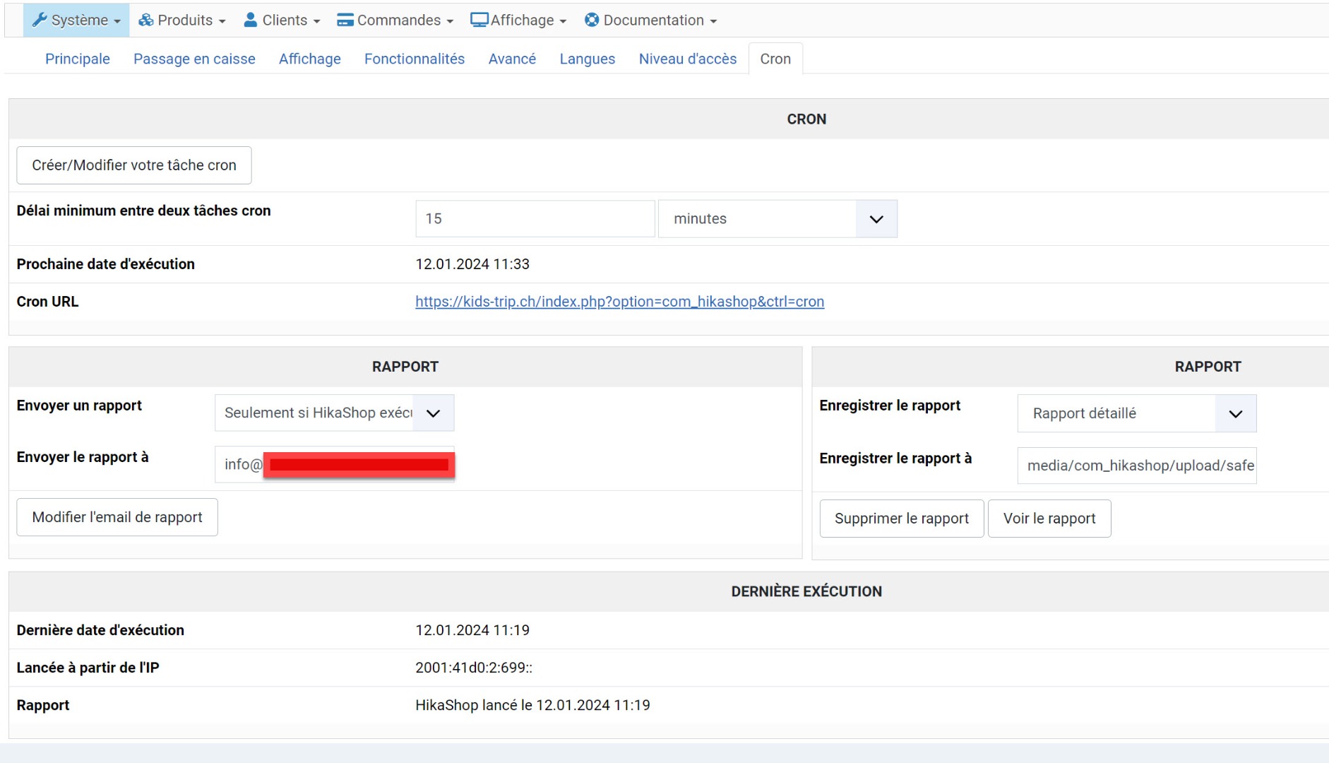 Le but de ce rapport par email, c'est de vérifier que la cron fonctionne, et que les plugins l'utilisant fonctionnent, vous que vous n'avez pas de retour directement visible sur le site web.