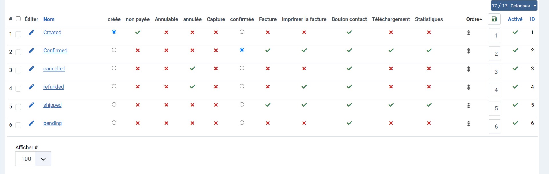 Dans le menu Système>Statuts de commande, c'est la colonne "unpaid" ("non payée" ?) qui permet de configurer si le bouton de paiement doit être fourni ou non en fonction du statut de la commande. Donc je vous recommande de regarder cela en premier.