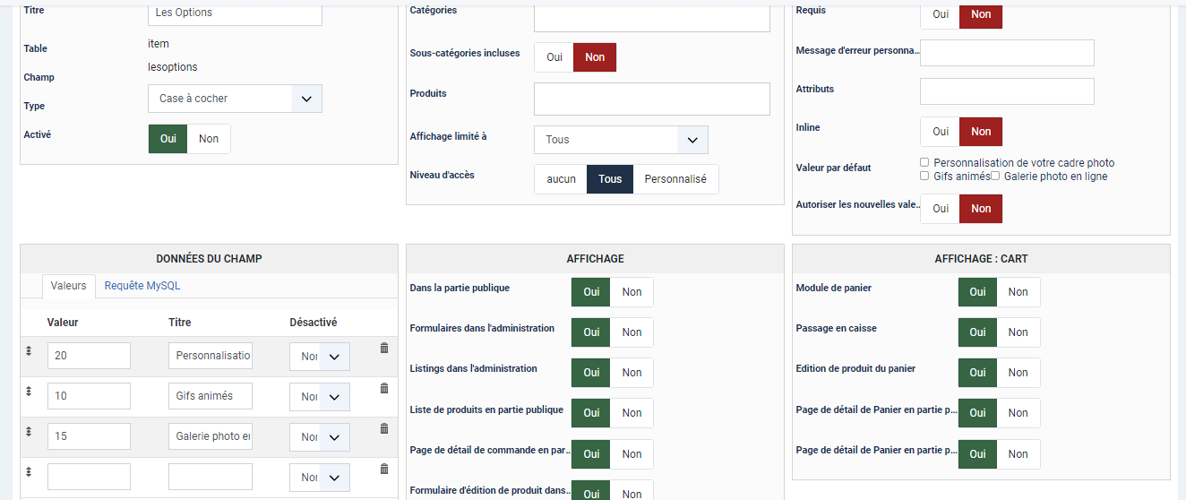 Si vous voulez plusieurs cases à cocher, je vous recommande de faire un champ par case à cocher.