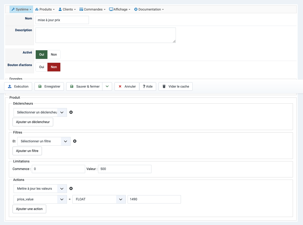 Enfin, notez que cette action permet de changer des valeurs. Mais il faut déjà que les produits aient un prix.
