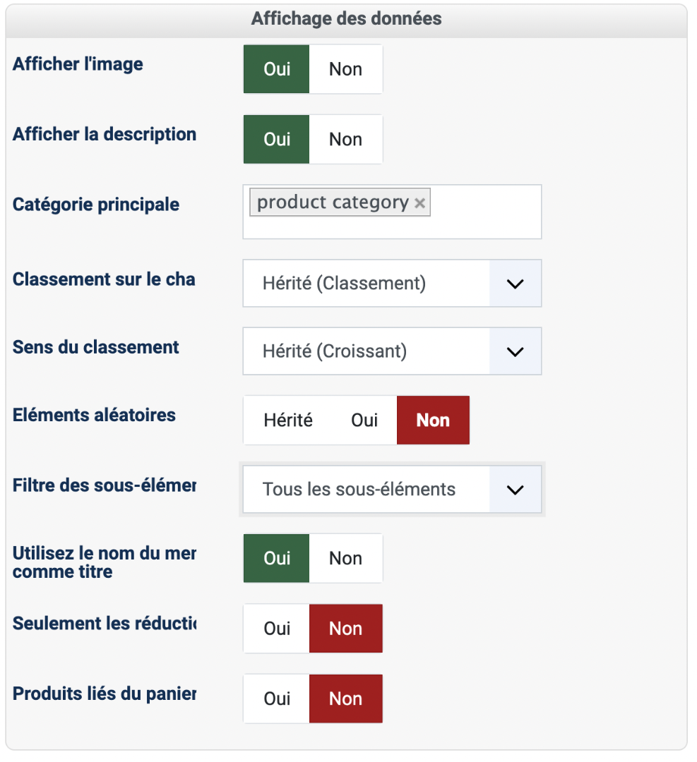 Dans cette option, vous voulez renseigner l'id d'un élément de menu de type "products listing" qui affiche tous les produits par défaut.