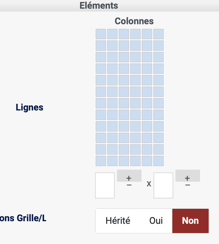 Je n'ai personnellement pas de problème à créer un élément de menu avec 4 colonnes et 999 lignes. Je peux utiliser les boutons plus et moins, ou directement écrire la valeur que je veux dans les deux champs :