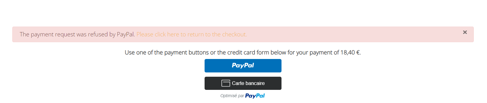 Il faudrait regarder la console de votre navigateur lorsque vous êtes sur la page avec les boutons de paiement et que vous essayez de payer. PayPal affiche là les problèmes rencontrés.