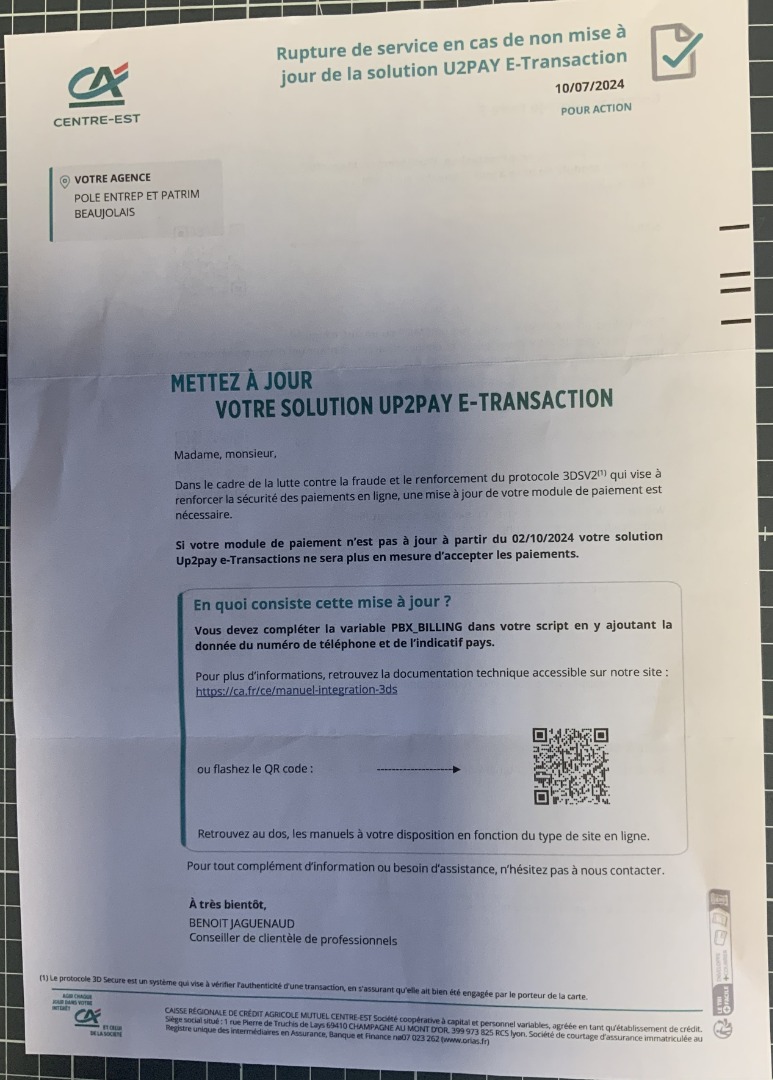 Vu que vous parlez de UP2Pay, en cherchant sur notre forum, je suis tombé sur :