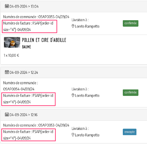 Tandis que pour le format du numéro de commande celui-ci est bien interprété partout, le numéro de facture ne l’est pas.