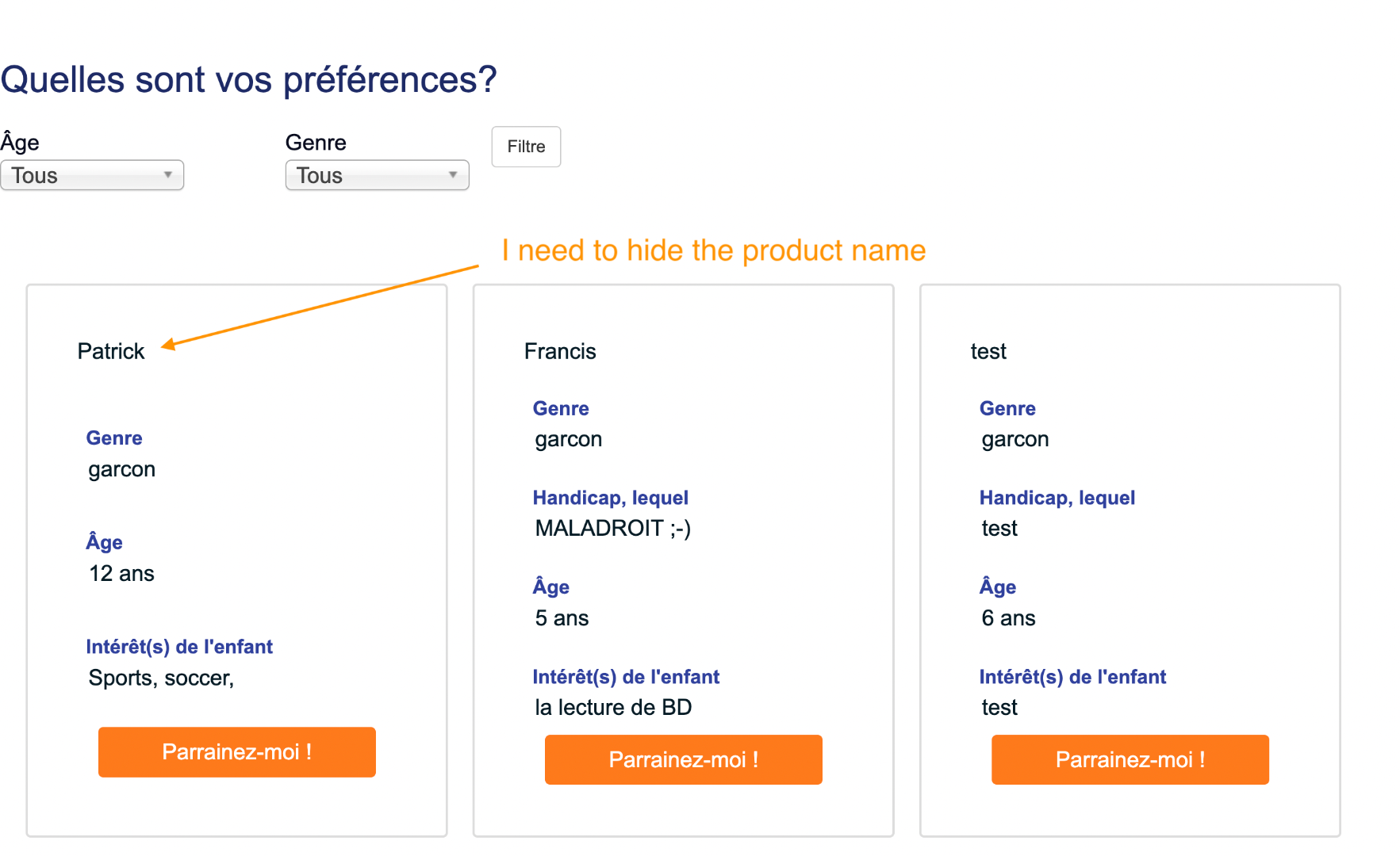 Nous allons voir de notre coté pour rajouter un élément HTML autour du nom du produit.