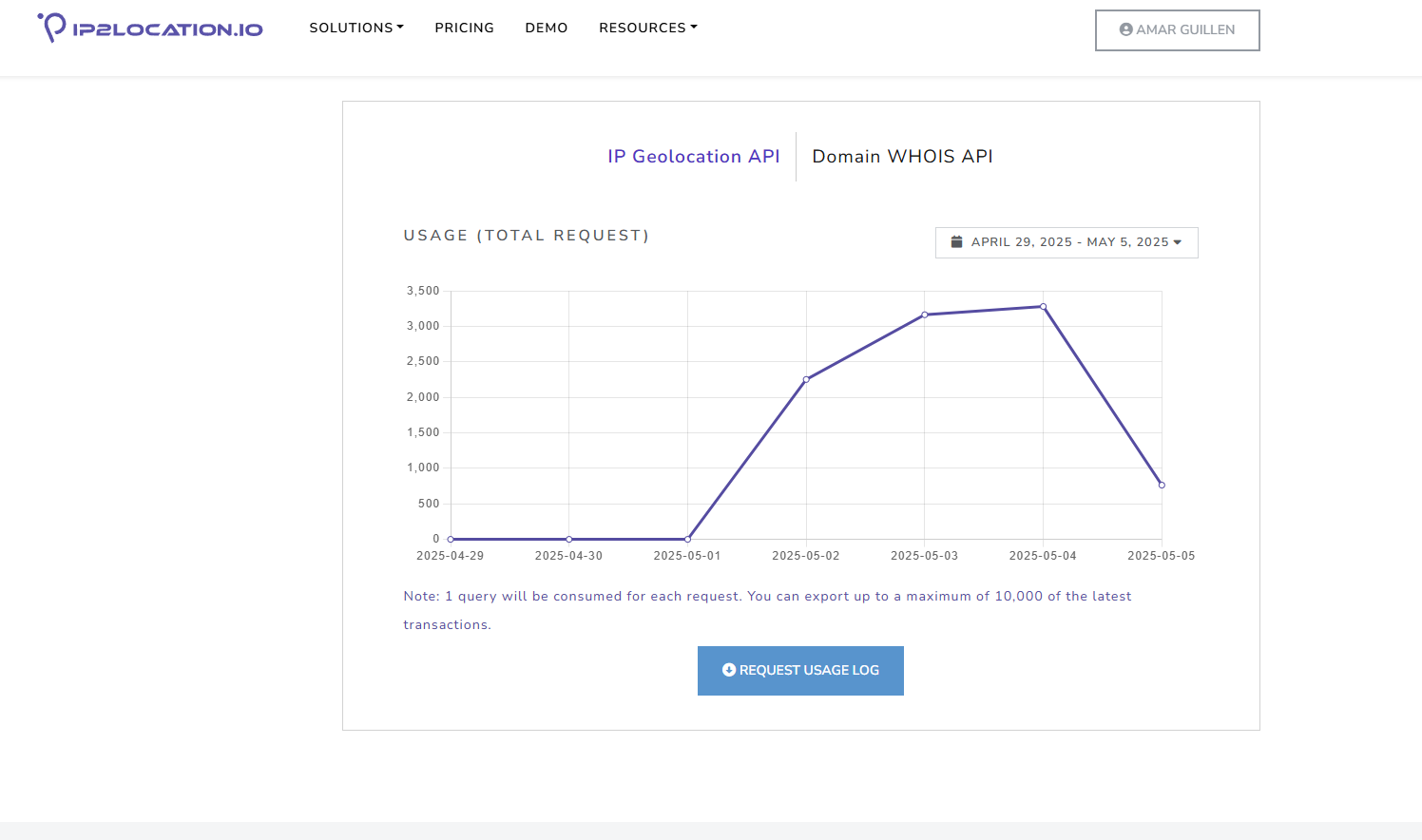 Je vais maintenant surveiller les statisques de IP2location.io car les crédits sont passés maintenant à 4 500 par jour. Le consommatio augmente un peu tous les jours. Ce n'est pas bon signe.