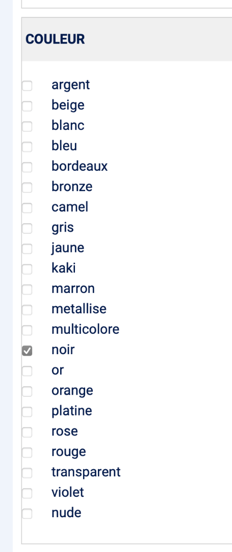 - déplier la catégorie "couleur" en cliquant dessus