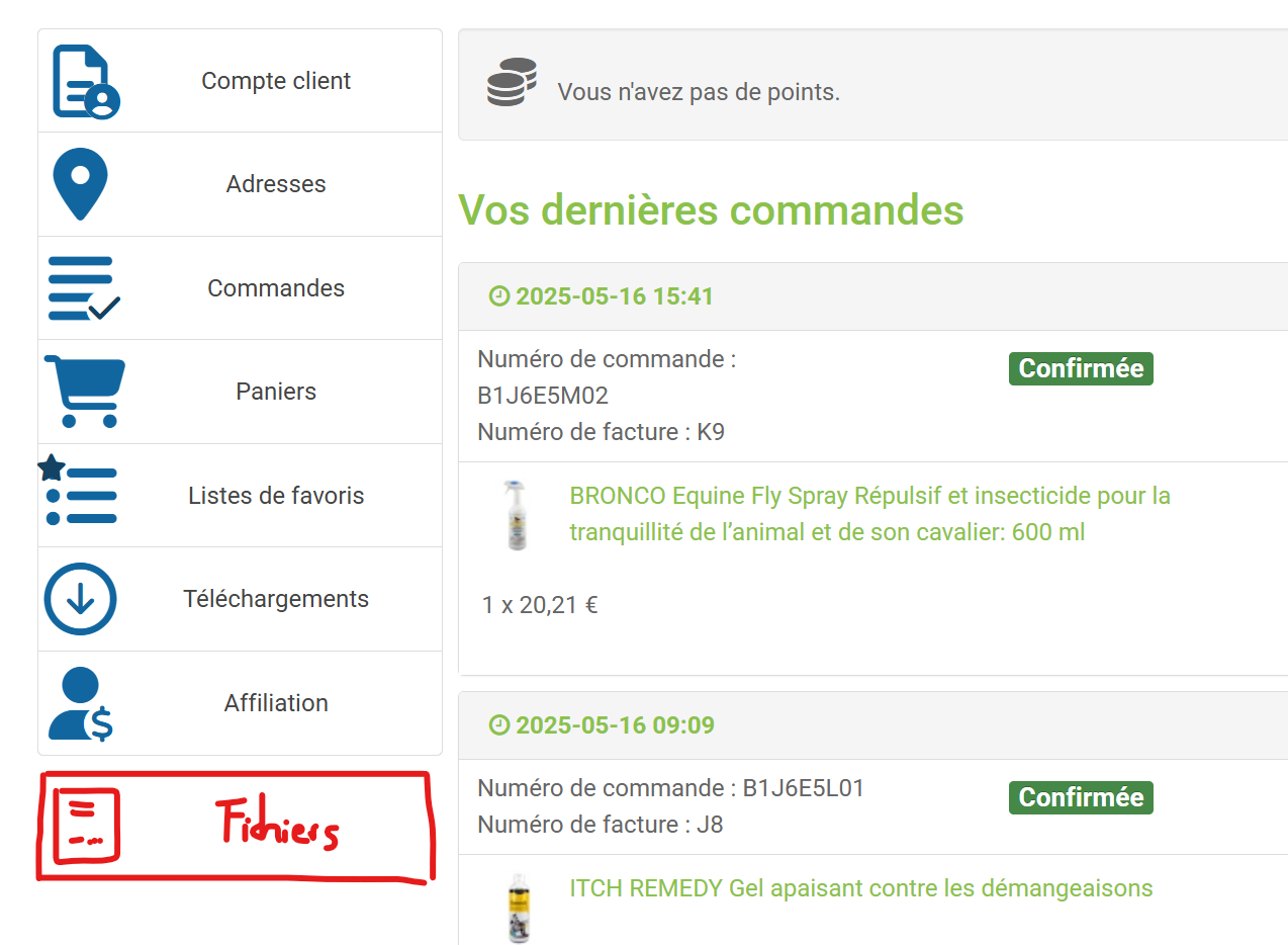 Tout cela est faisable, mais ne serait-il pas plus cohérent de ne pas ajouter la zone "Factures", et de simplement surcharger le bouton de récupération de la facture d'une commande pour que si une facture en provenance d'EBP existe déjà, alors au lieu de laisser le plugin PDF invoice générer la facture de la commande, la facture en provenance d'EBP est directement fournie ?