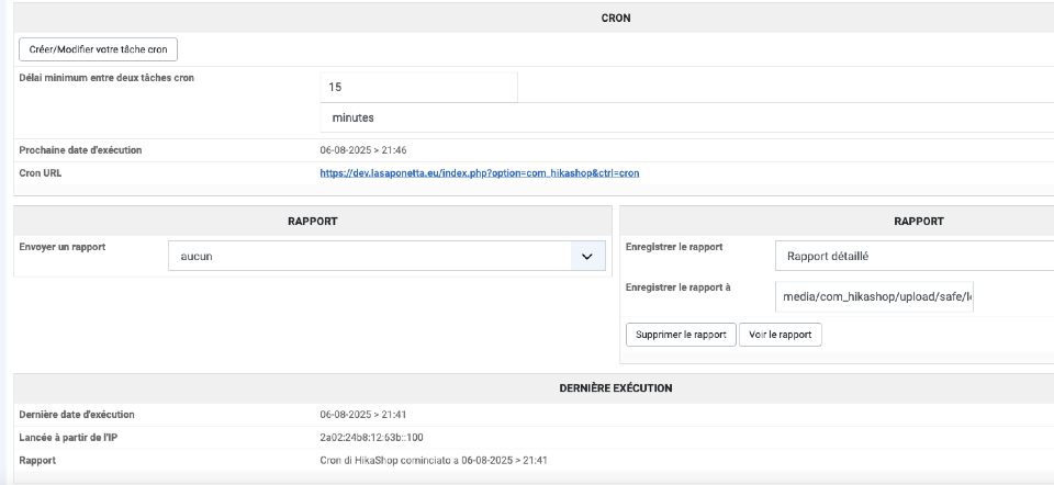 - dans l'interface de webcron.org, au lieu d'utiliser l'URL cron d'HikaShop
