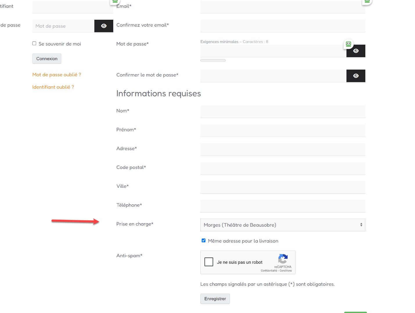 Ainsi, "Choisir" sera sélectionné par défaut, et si l'utilisateur essaie de valider sans sélectionné autre chose dans le champ, cela sera refusé avec un message d'erreur car la valeur de choisir est vide et que le champ est requis.