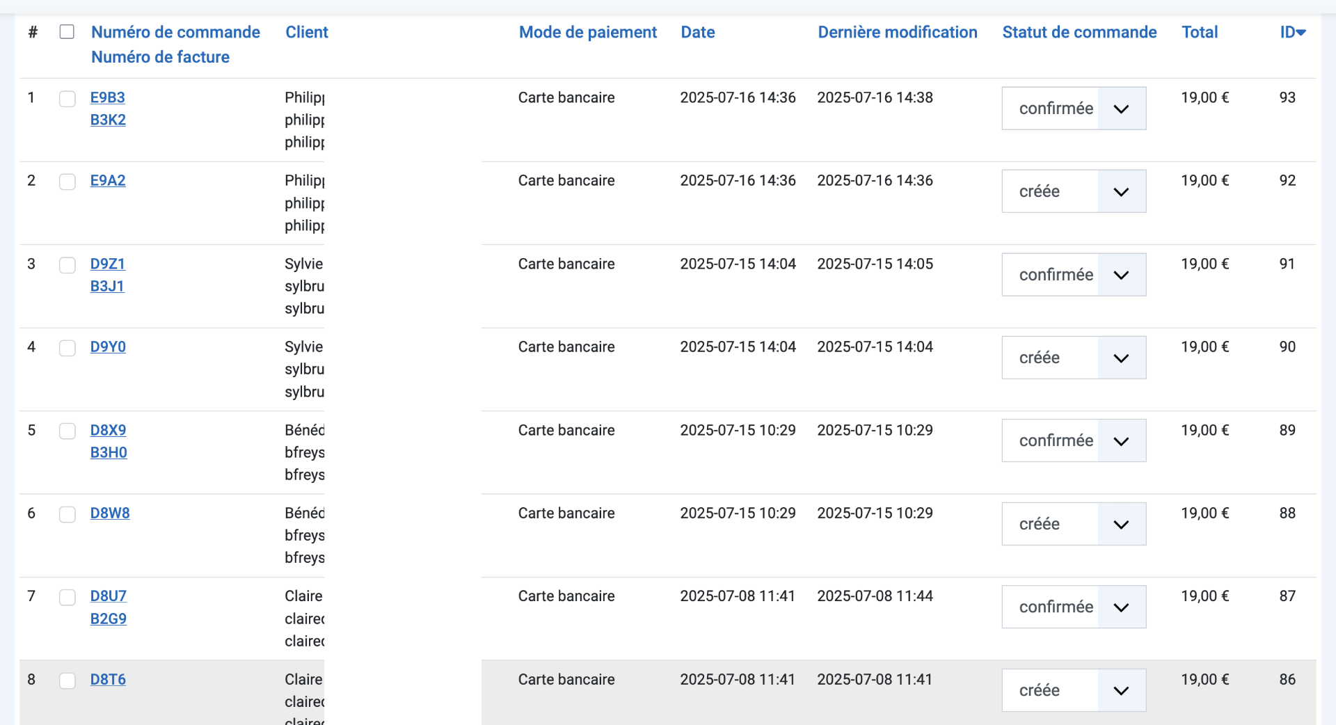 Normalement, la commande créée change de statut en "confirmée" suite au paiement.