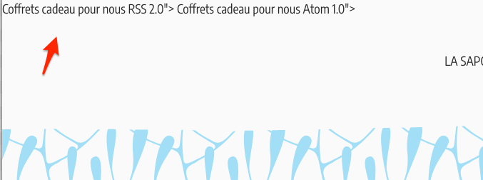Je pense que le problème provient d’un balisage HTML inséré dans l’attribut title des balises <link rel="alternate"> générées pour les flux RSS et Atom. Les guillemets et balises HTML à l’intérieur de title ne sont pas échappés, ce qui rend le code HTML invalide et provoque l’affichage de fragments de code dans le front-end.