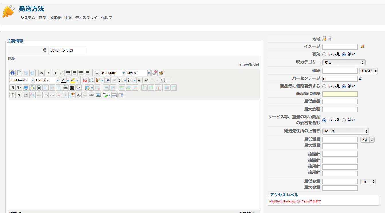 発送方法の「2.HikaShop manual shipping plugin」にて、新規で発送方法を6つ作成して下さい。