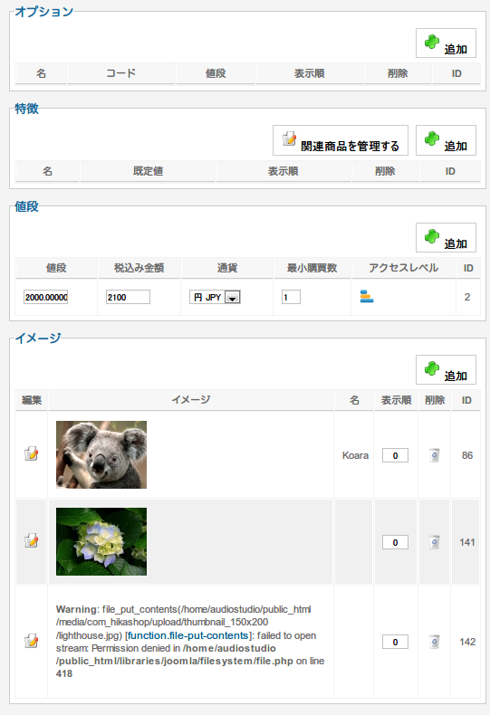 気になる点として、実際にアップロードは行われているようです。このエラーが表示された後、リロードすると画像自体は登録されています。(ただしサムネイルが作られていない?)