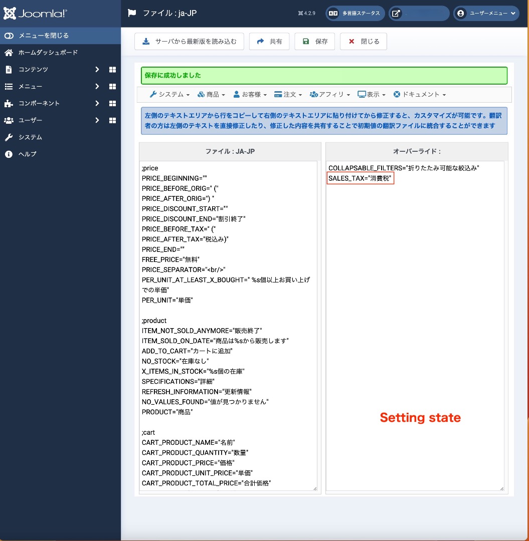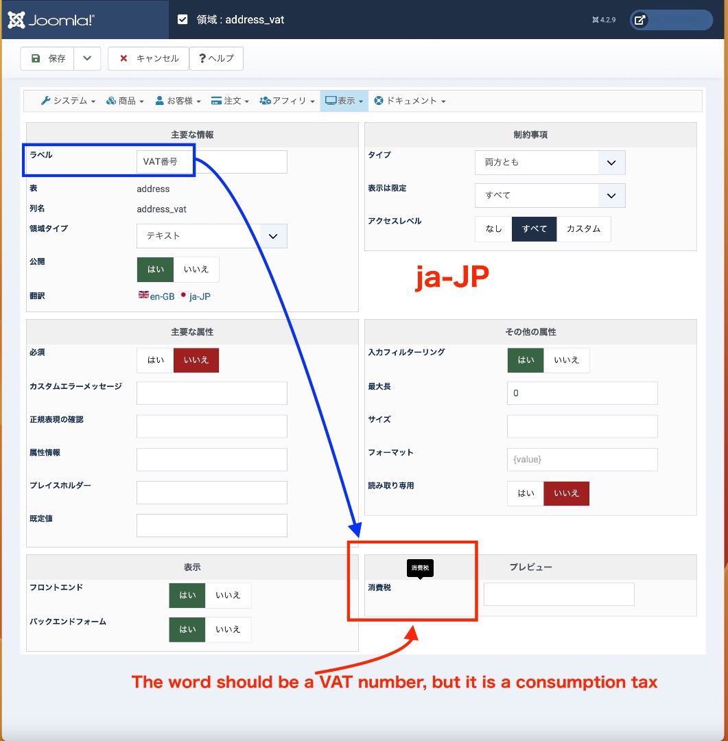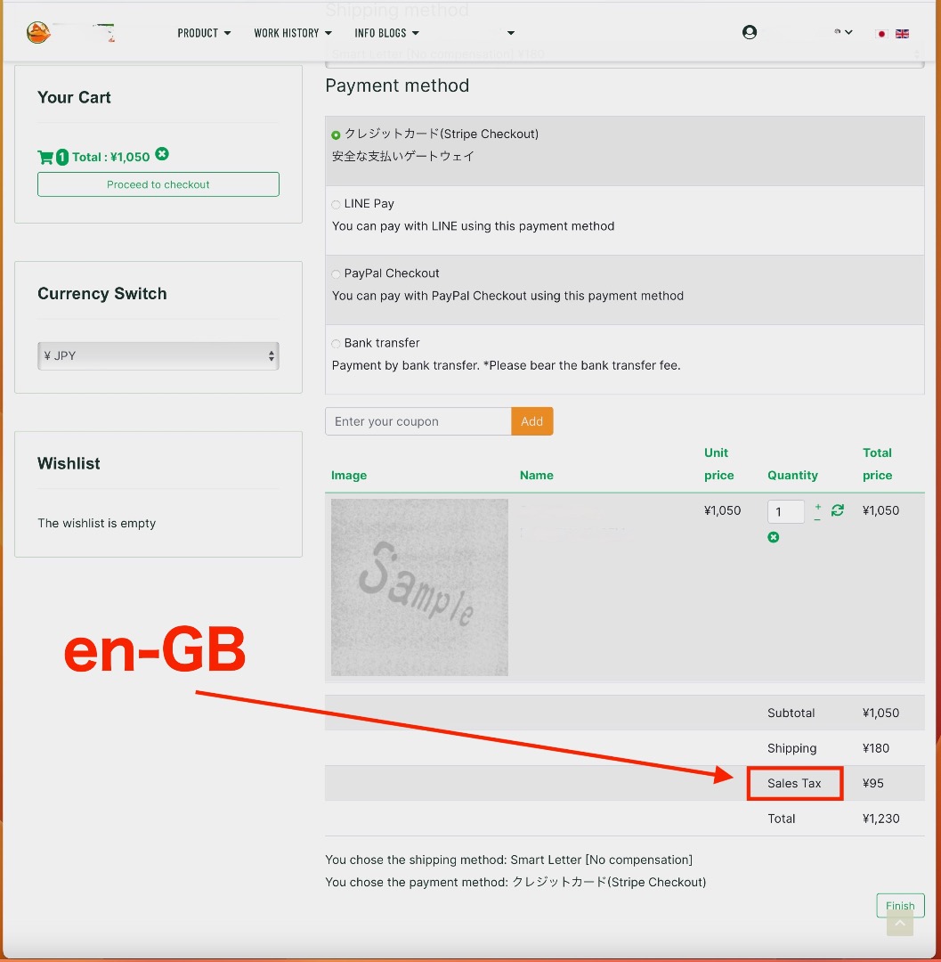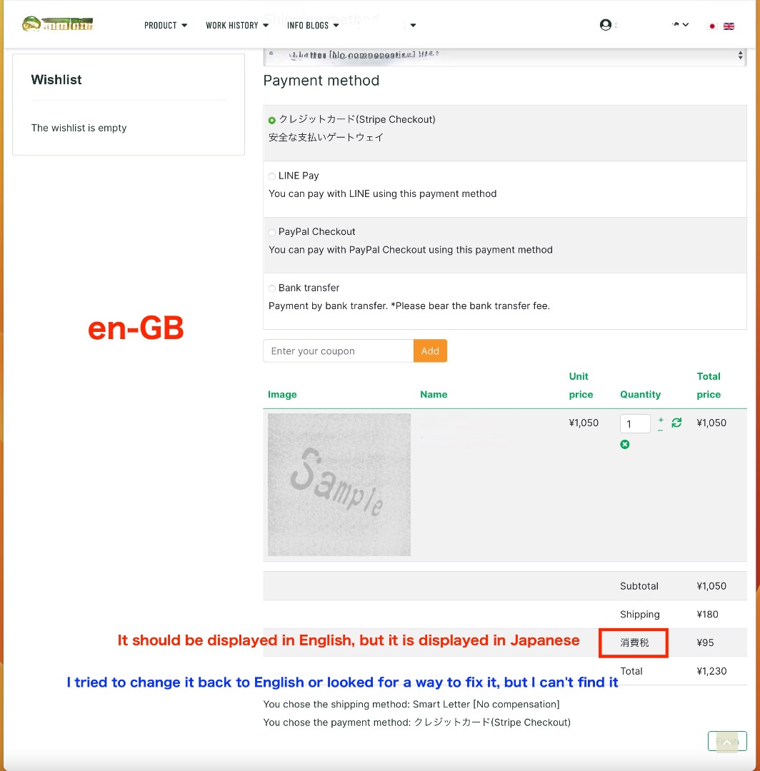 英語版での決済にて消費税の単語が日本語