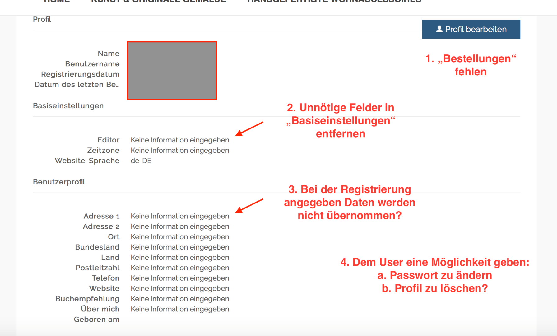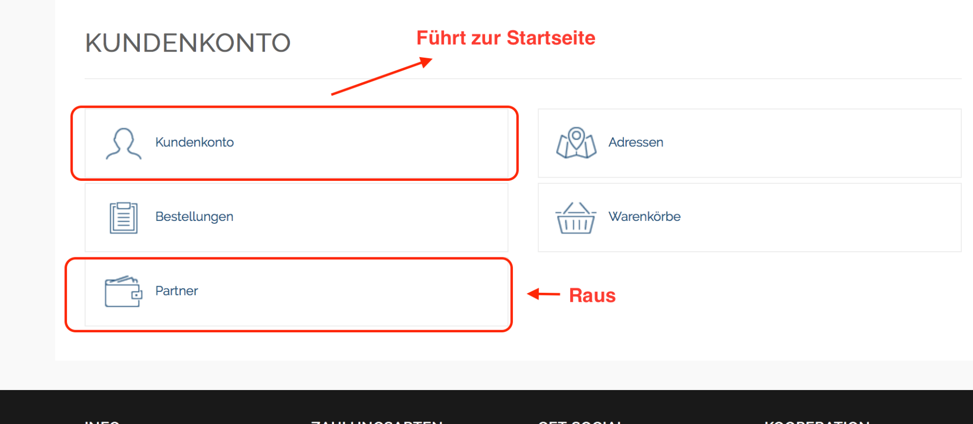 Schau mal hier im Screenshot: das ist der Link, der falsch ist. Da musst du stattdessen den Link (basierend auf dem Alias) von deinem HikaShop-Menüeintrag für's Benutzer Kontrollzentrum eintragen.