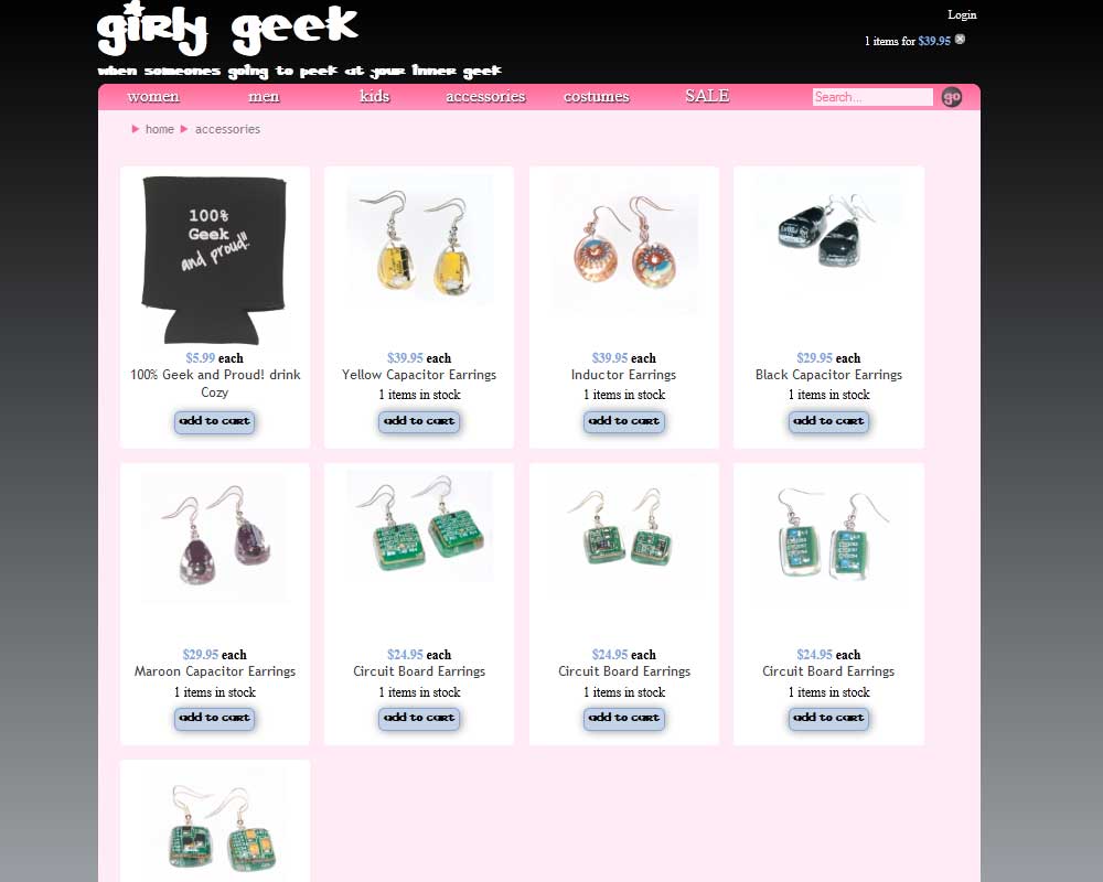 Girly Geek is an ecommerce company providing clothing, costumes and accessories for smart women and girls in the science, math, and technology industries. We have t-shirts and long sleeve, shorts and pants, underwear and outerwear for proud geeks, women, men, girls, boys, and babies.