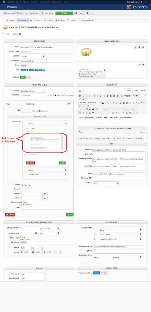 I would like to have an option to automatically input both Retail price and Price by writing php script to retrieve referential prices from my local mysql data base. These prices must have a place holder to hold these retrieved price for price calculation before filling in product price field. For more understanding, I also enclose two images coming along with explanations step by step.