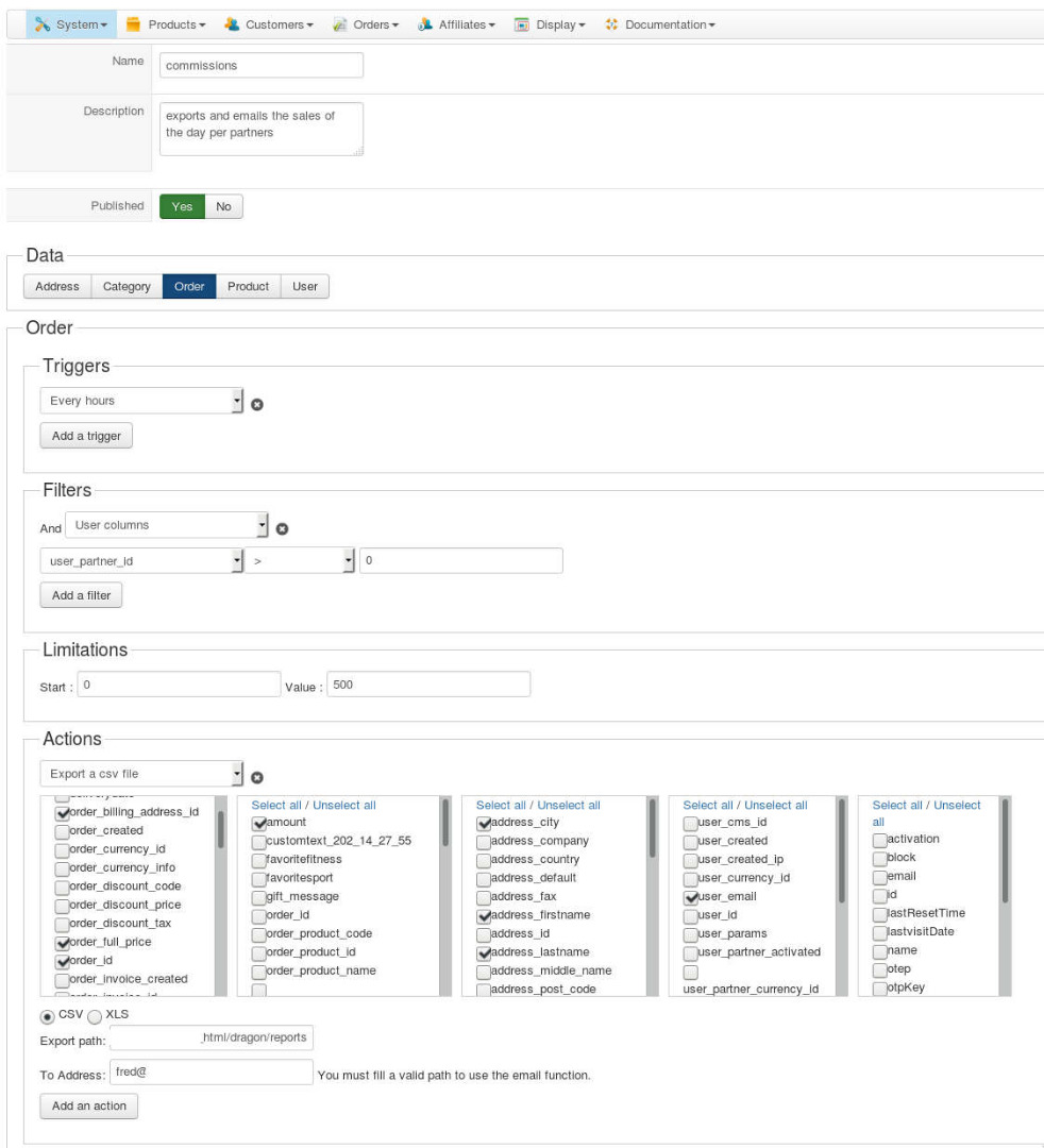 ps 2: and since I had to wait for your response, I tried without having an email and directory set up. This time Hikashop offered to download the file and all the data are in that file! Yeah... so now how do I do to get it automatically either by email or saved on the disk?