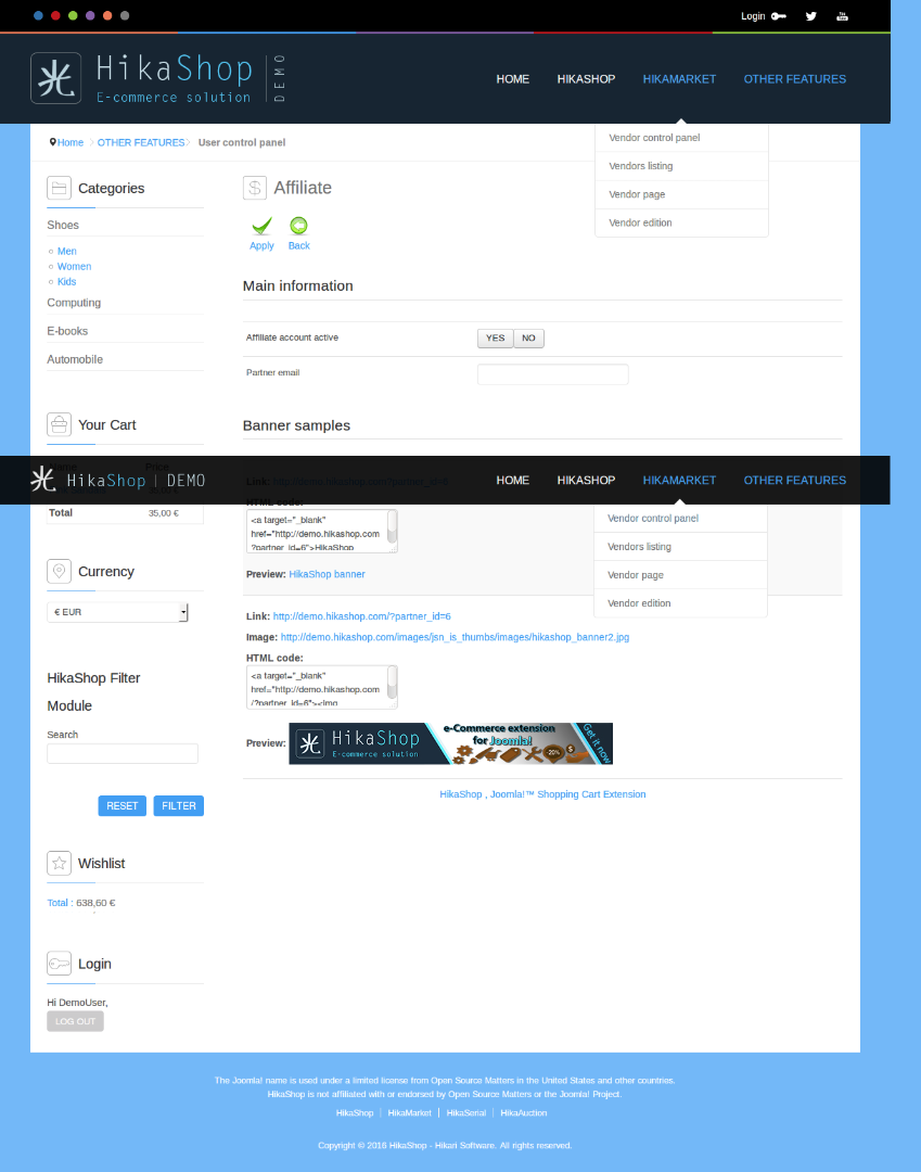 You get the statistics on your website affiliate program page because your account is an affiliate (which is not the case on the demo website).