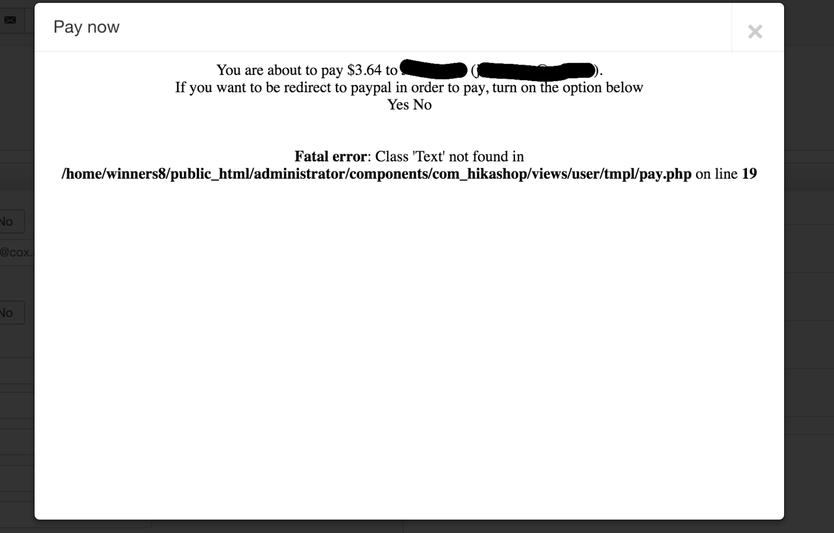 the best way to progress on the subject, you have to go directly to the file (\YourWebSite\administrator\components\com_hikashop\views\user\tmpl\pay.php) and check that you have this around line 2 to 12 :