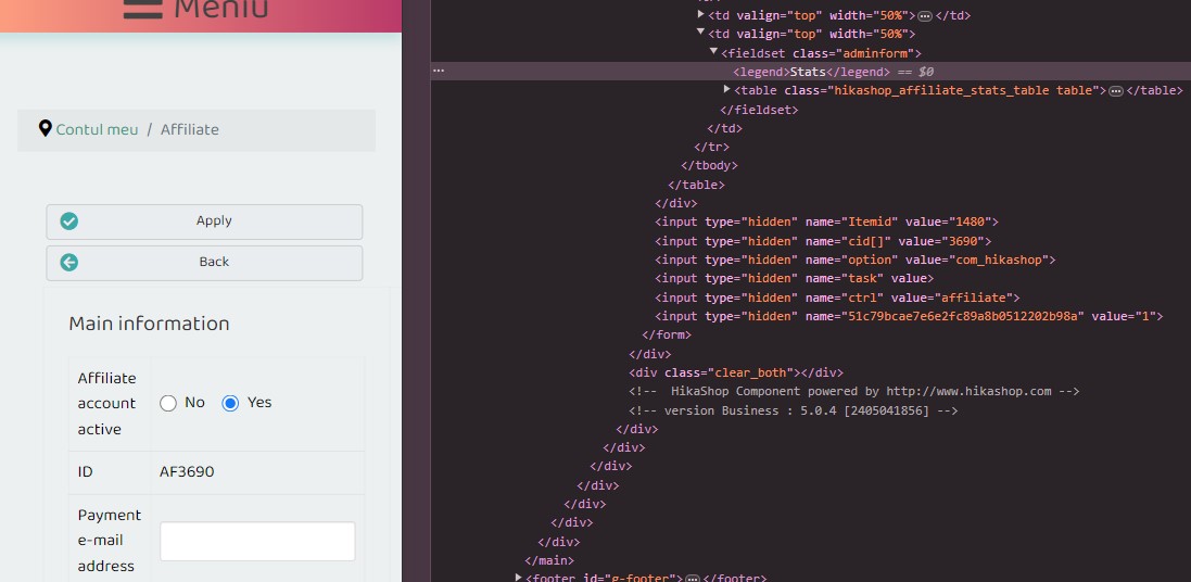 -- Error-message(debug-mod must be tuned on) -- : Affiliation statistics are not visible in front-end