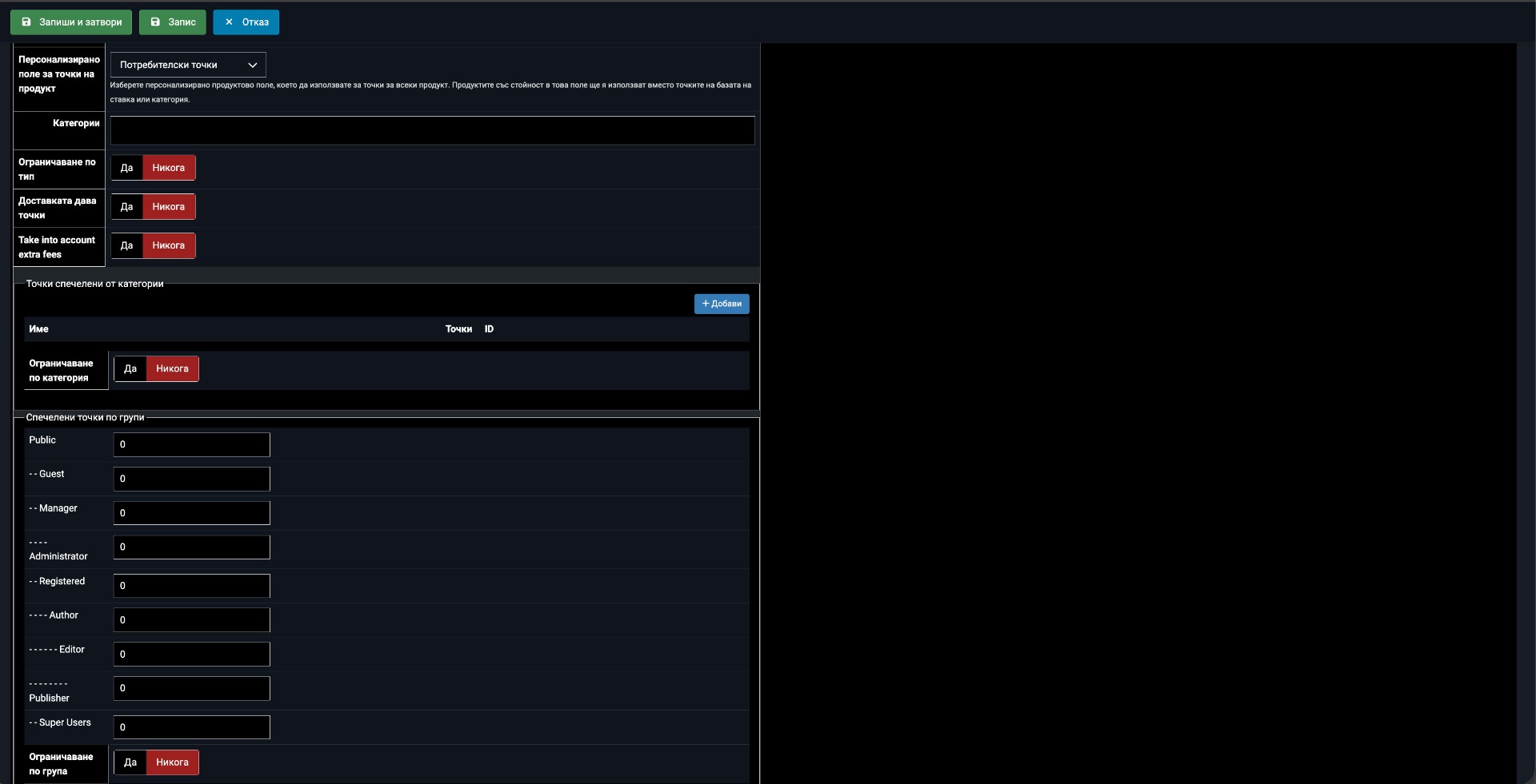 Regarding the points disappearing when a coupon is deleted: if "Return points on cancel" is set to "Yes" (which it is), the points should be returned when the order is cancelled. But if the customer just deletes the coupon without cancelling the order, the points may not be returned. This is expected because the coupon deletion is not the same as an order cancellation.