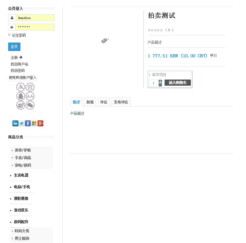however if the auction enabled, the product pagewill be like this: