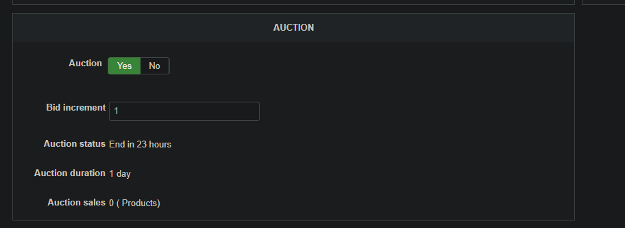 - Change the value of the "product_auction" field to 0