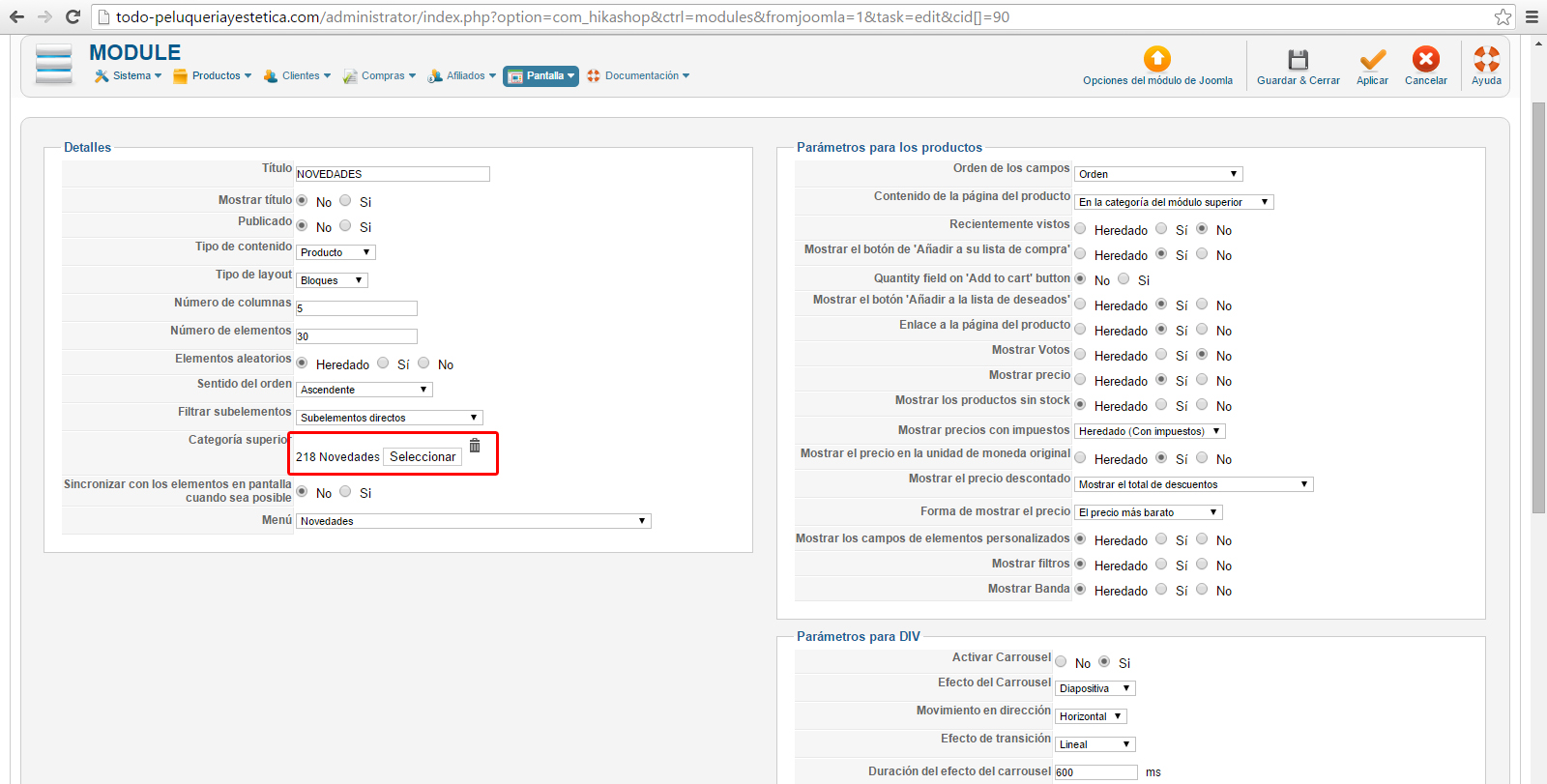 As this should display the products in the category "Novedades" ?, but does not show the products in this category.