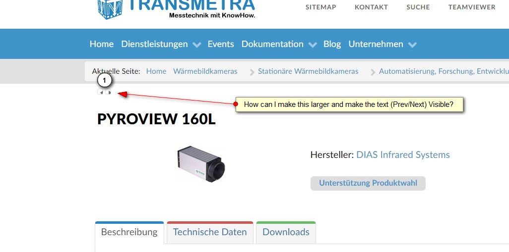 Finally, I can't find a way to make the previous/next buttons clearly visible in the product detail view. I've attached an image to show what I mean.