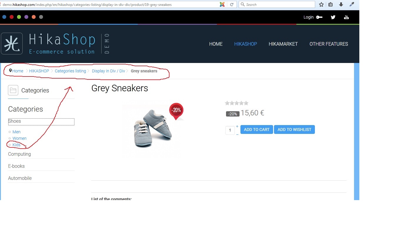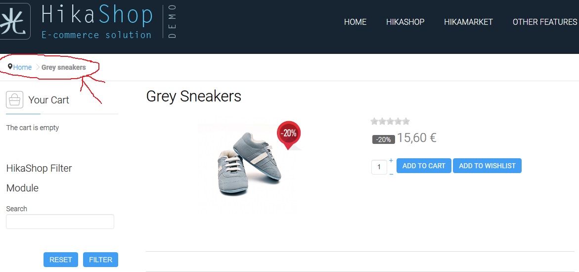 So HikaShop can't know from where the customer is coming from, it cannot associate the breadcrumb with a menu ; it cannot know from which category it need to start the breadcrumb (because no menu and no configuration) and cannot generate the links for the categories (since it also require a menu).